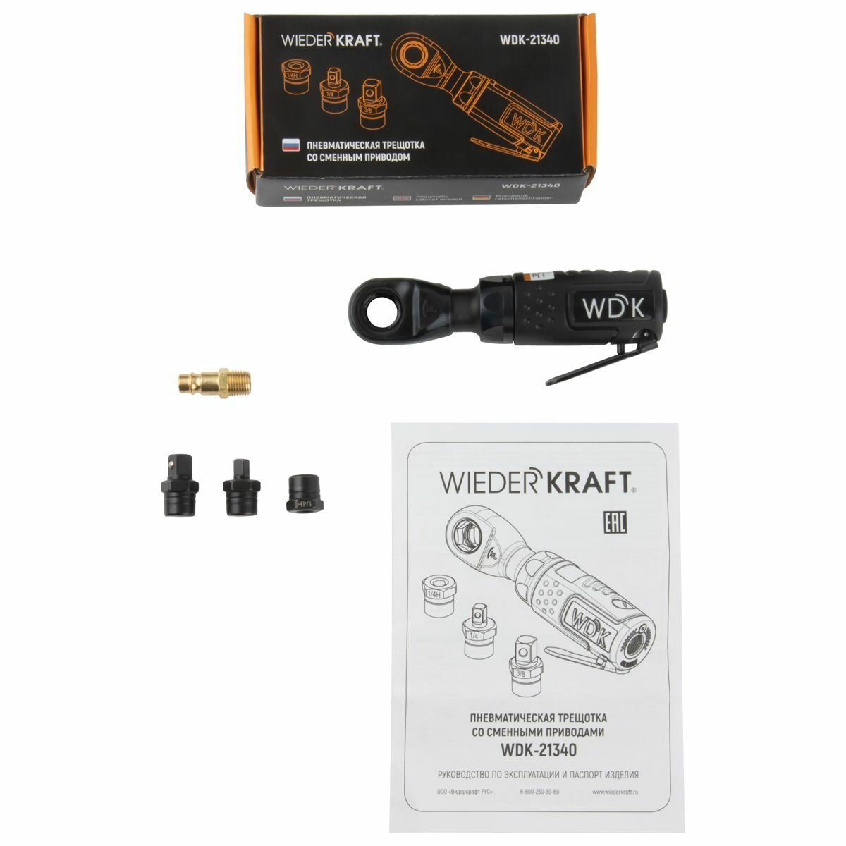 Купить Пневматическая трещотка со сменными приводами 1/4", 3/8", привод для бит 1/4" (6,3 мм) WDK-21340