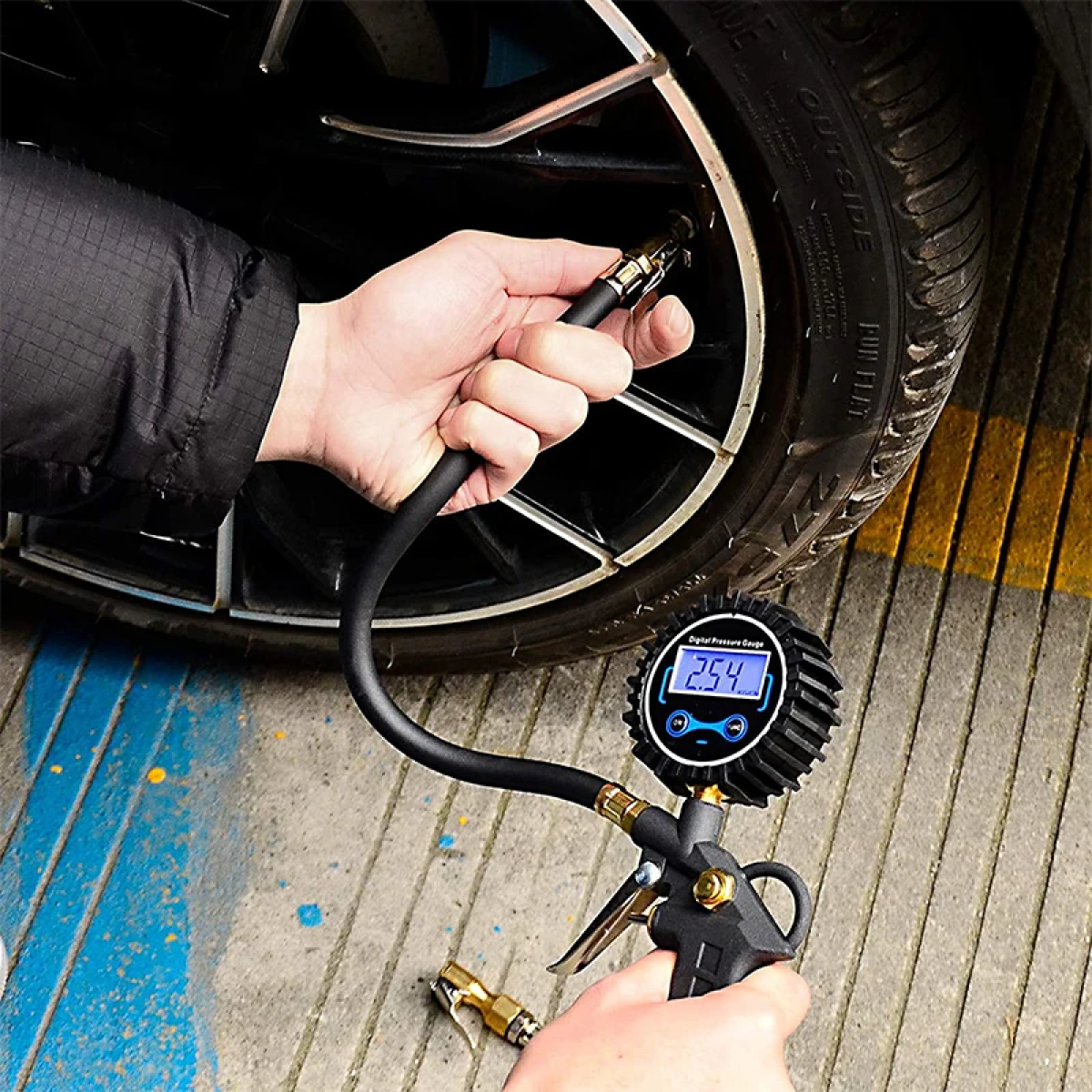 Купить Пистолет для подкачки шин с цифровым манометром Kige, набор 7 предметов