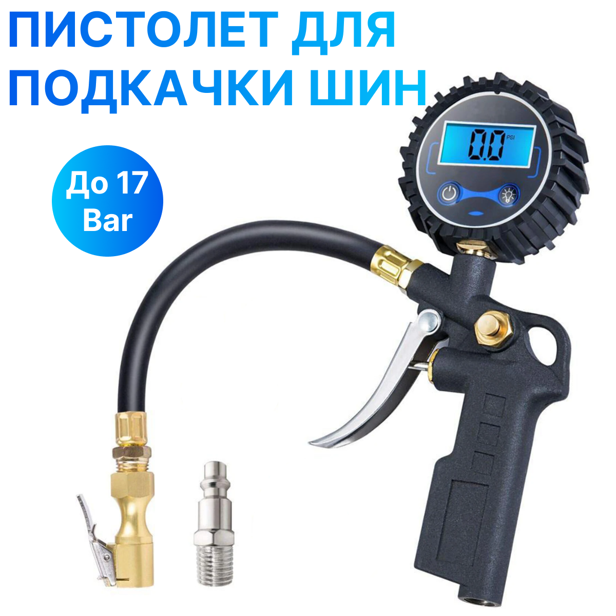Пистолет для подкачки шин с цифровым манометром Kige, набор 7 предметов интересное: