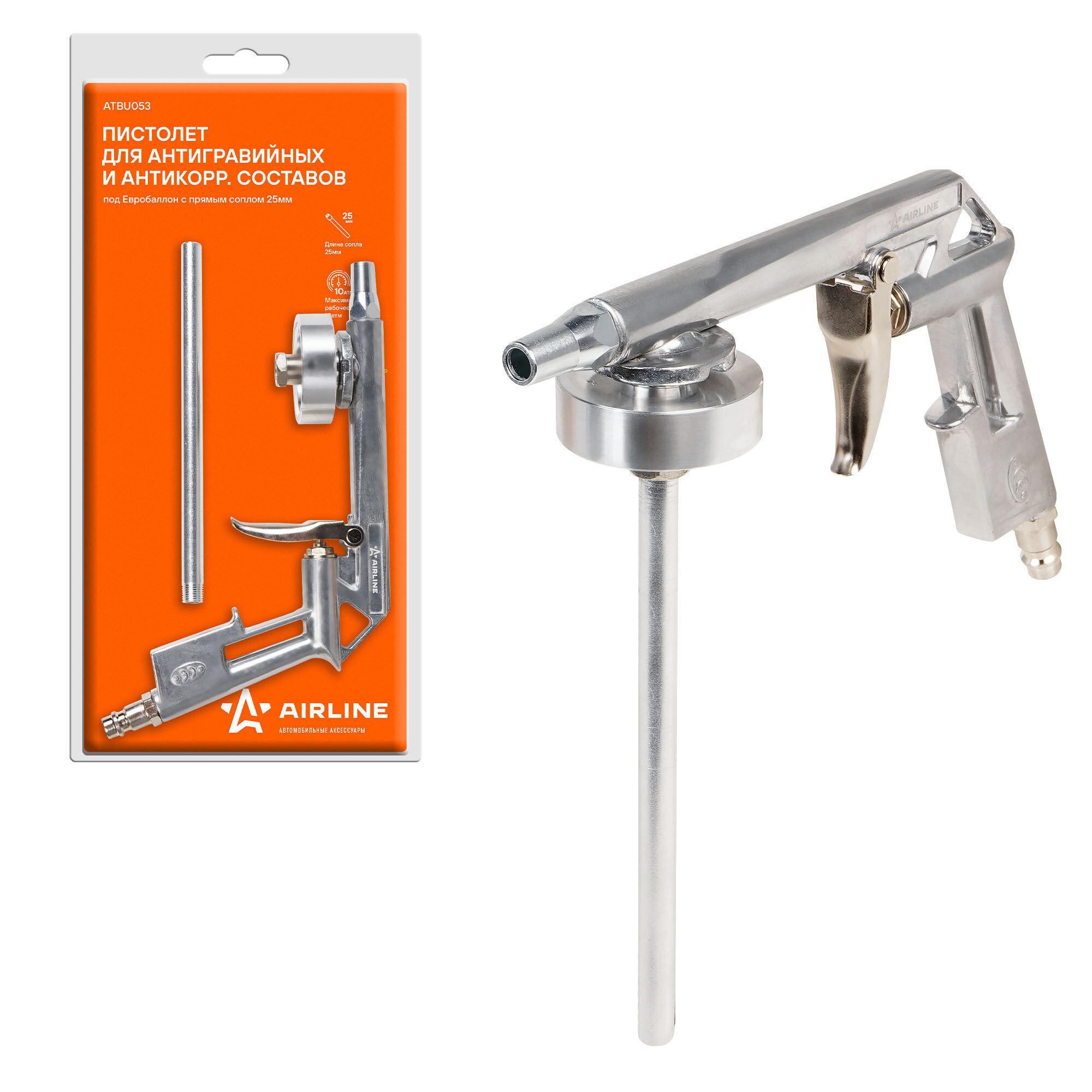 Пистолет Для Антигравийных И Антикорр Составов Под Евробаллон С Прямым Соплом 25Мм Atbu053 AIRLINE арт. atbu053