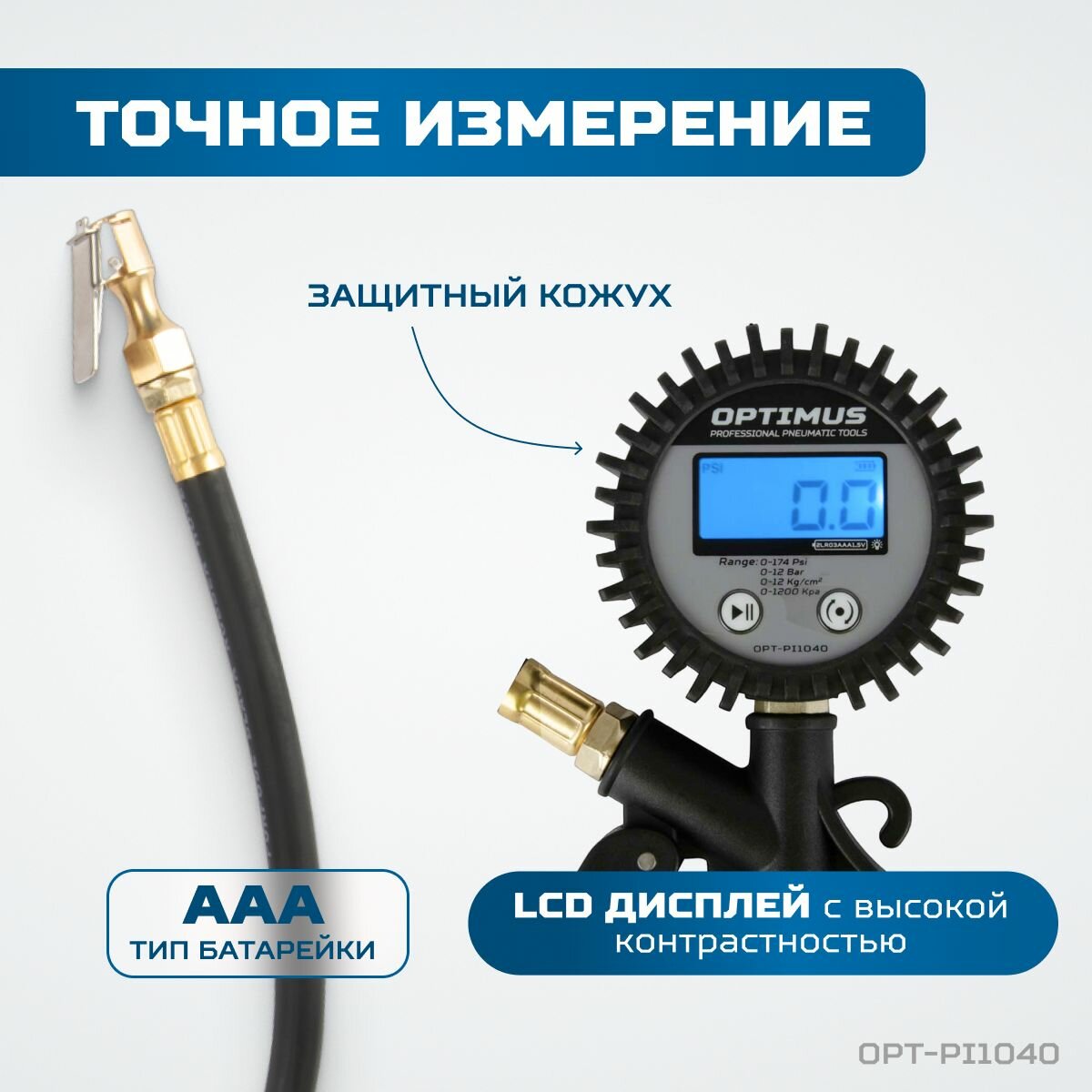 Купить Пистолет для подкачки шин с цифровым дисплеем 0-12 бар OPT-PI1040