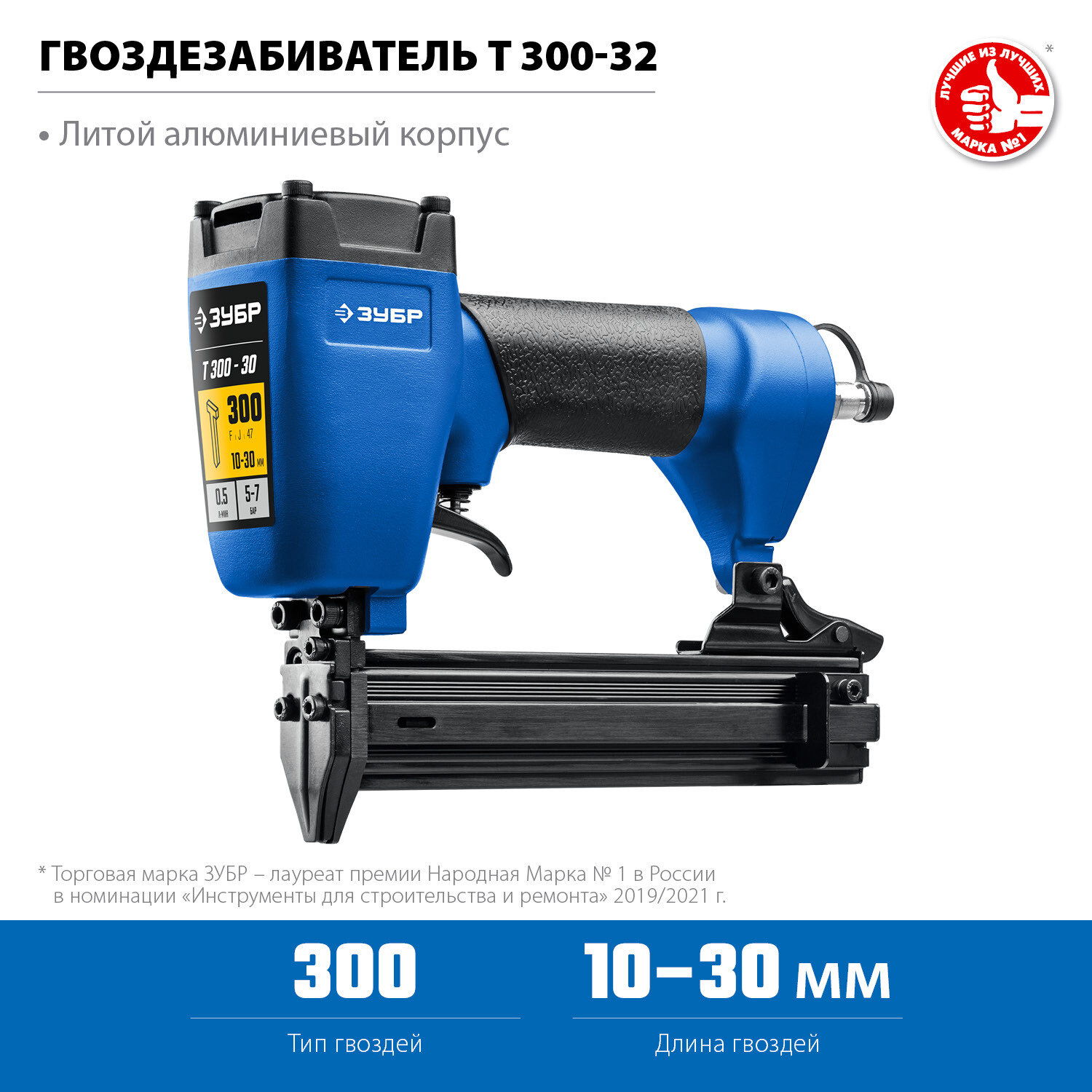 Пневматический нейлер ЗУБР Профессионал Т300-32 (10-30 мм) 31932