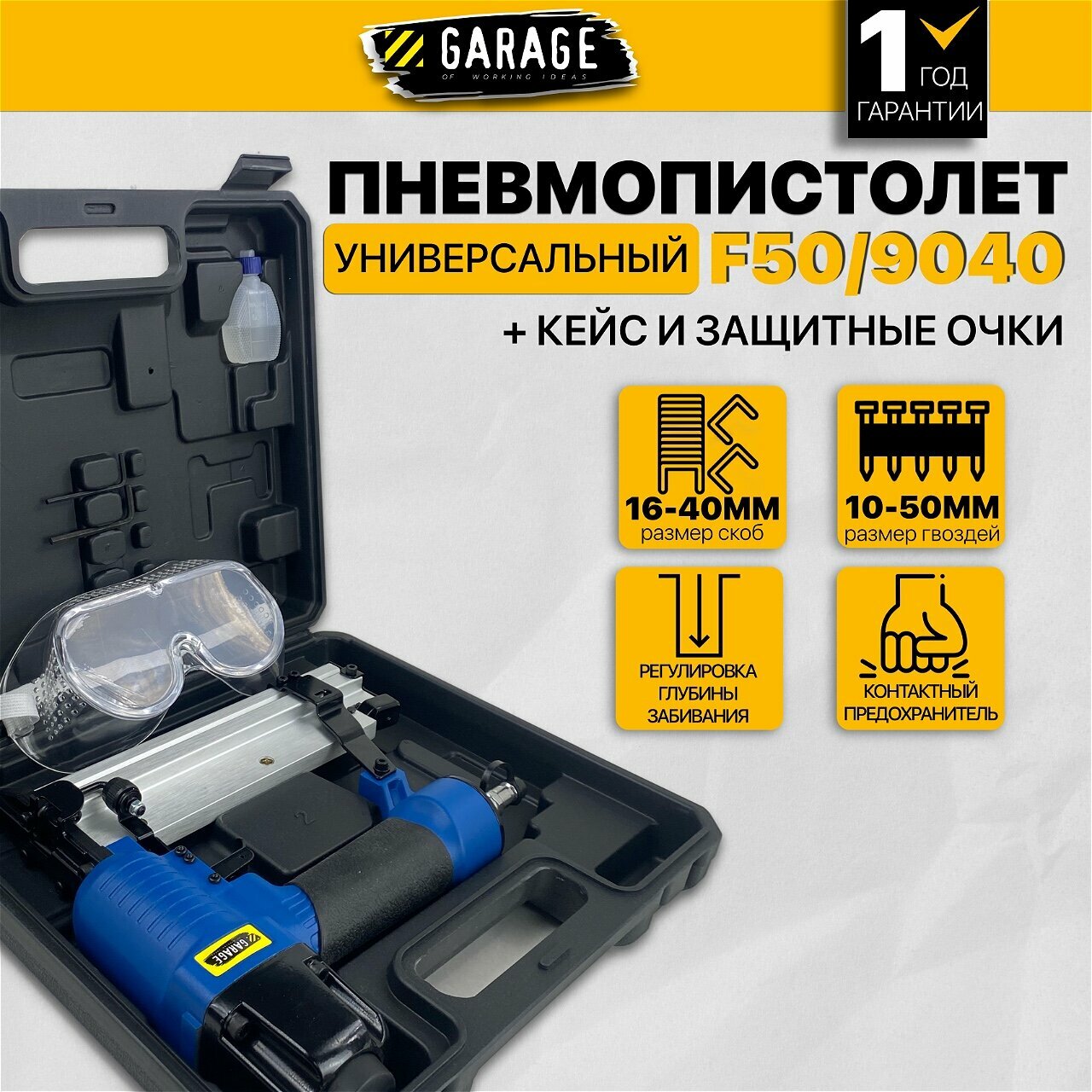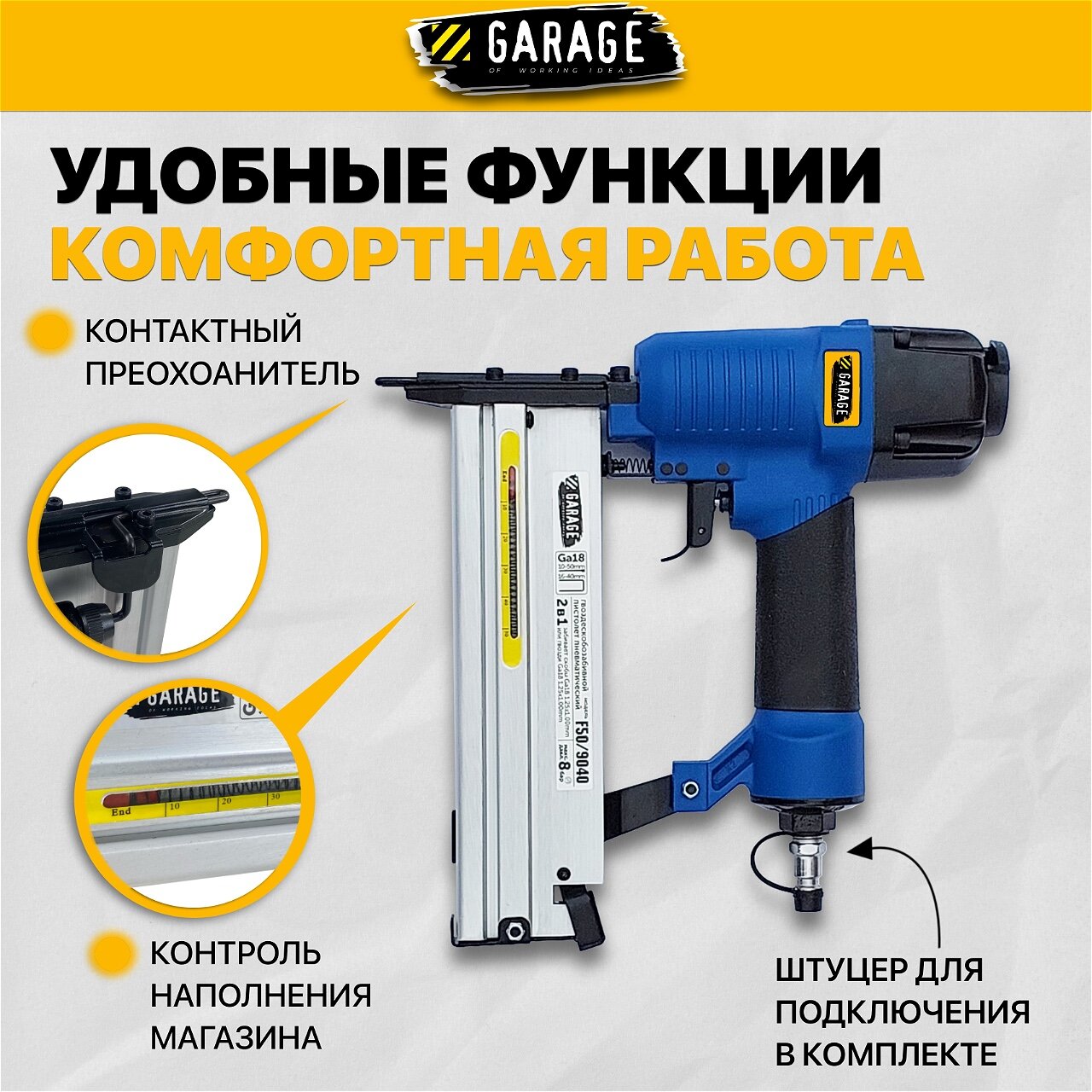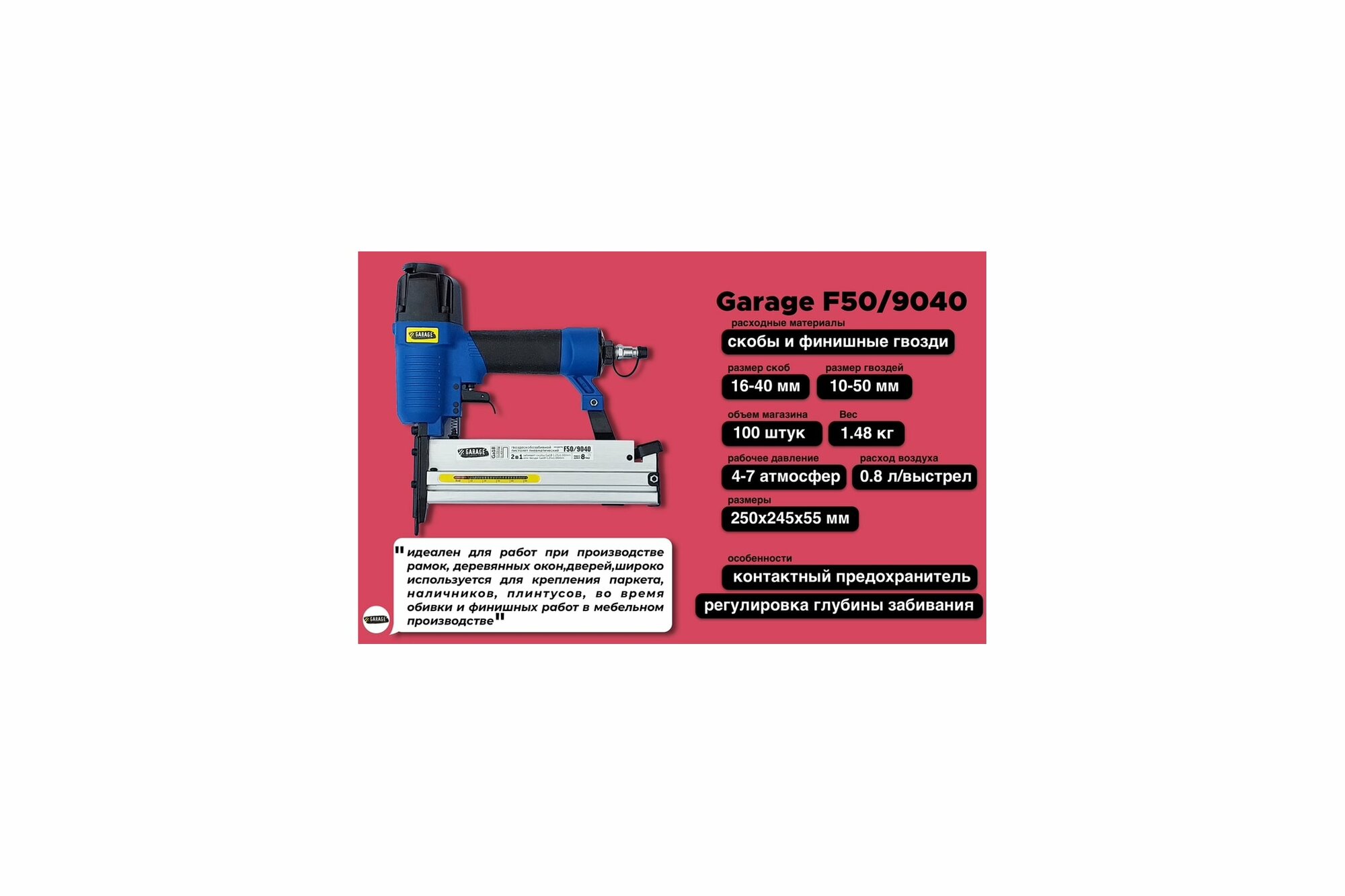Пневматический гвоздескобозабивной пистолет Garage F50/9040 интересное: