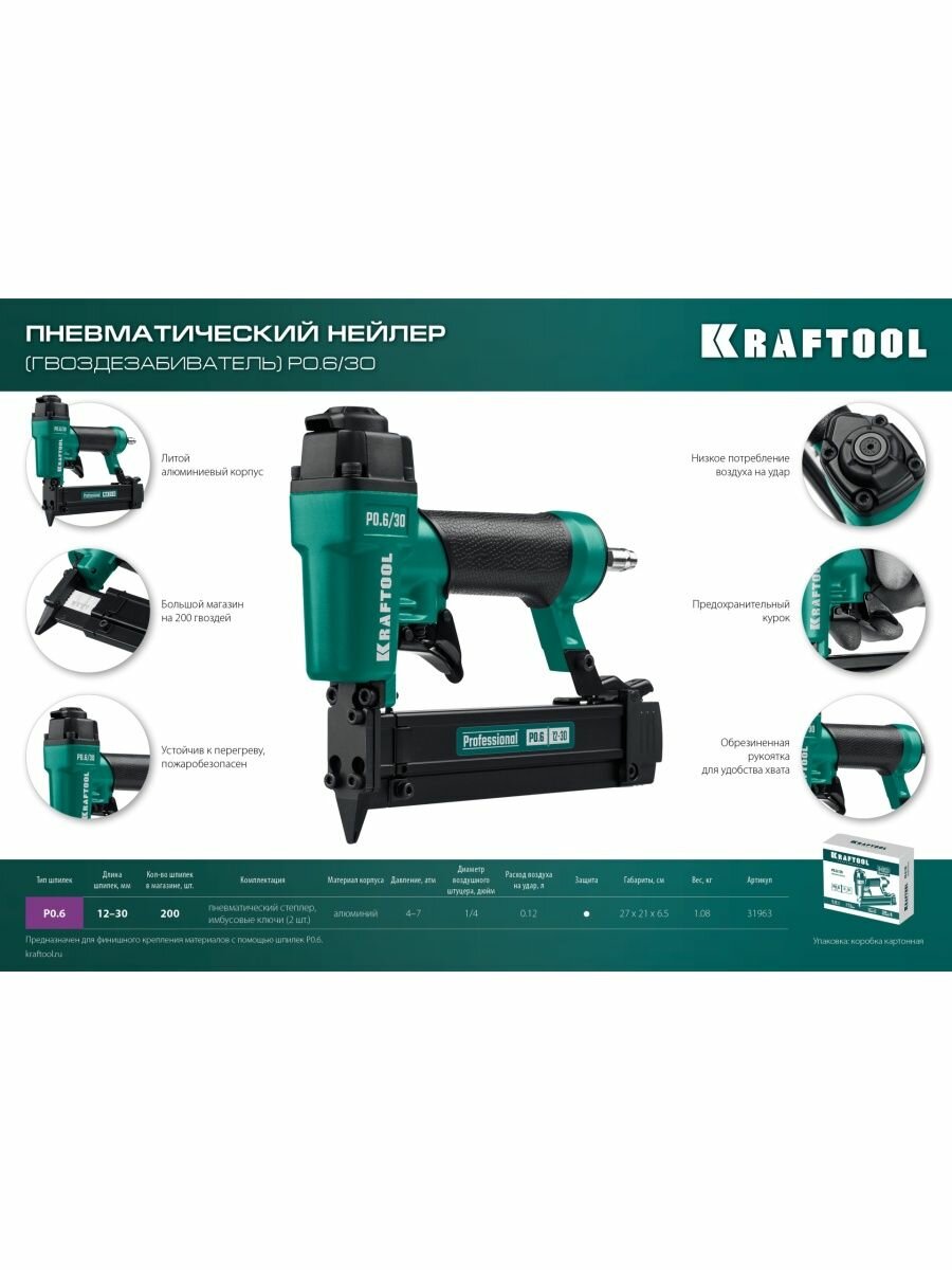 KRAFTOOL P0.6/30 пневматический нейлер для шпилек 23Ga тип P0.6 (12-30 мм), (31963)
