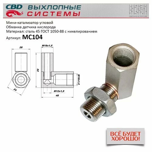 Мини-катализатор угловой никелированный корпус . Cbd MC104 интересное: