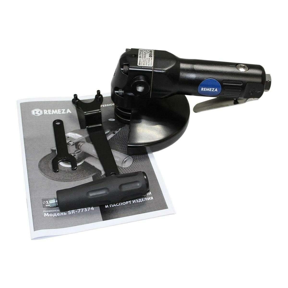 | Комплектация | Пневмоуглошлифмашина 125 мм. SR-77374 Remeza |
