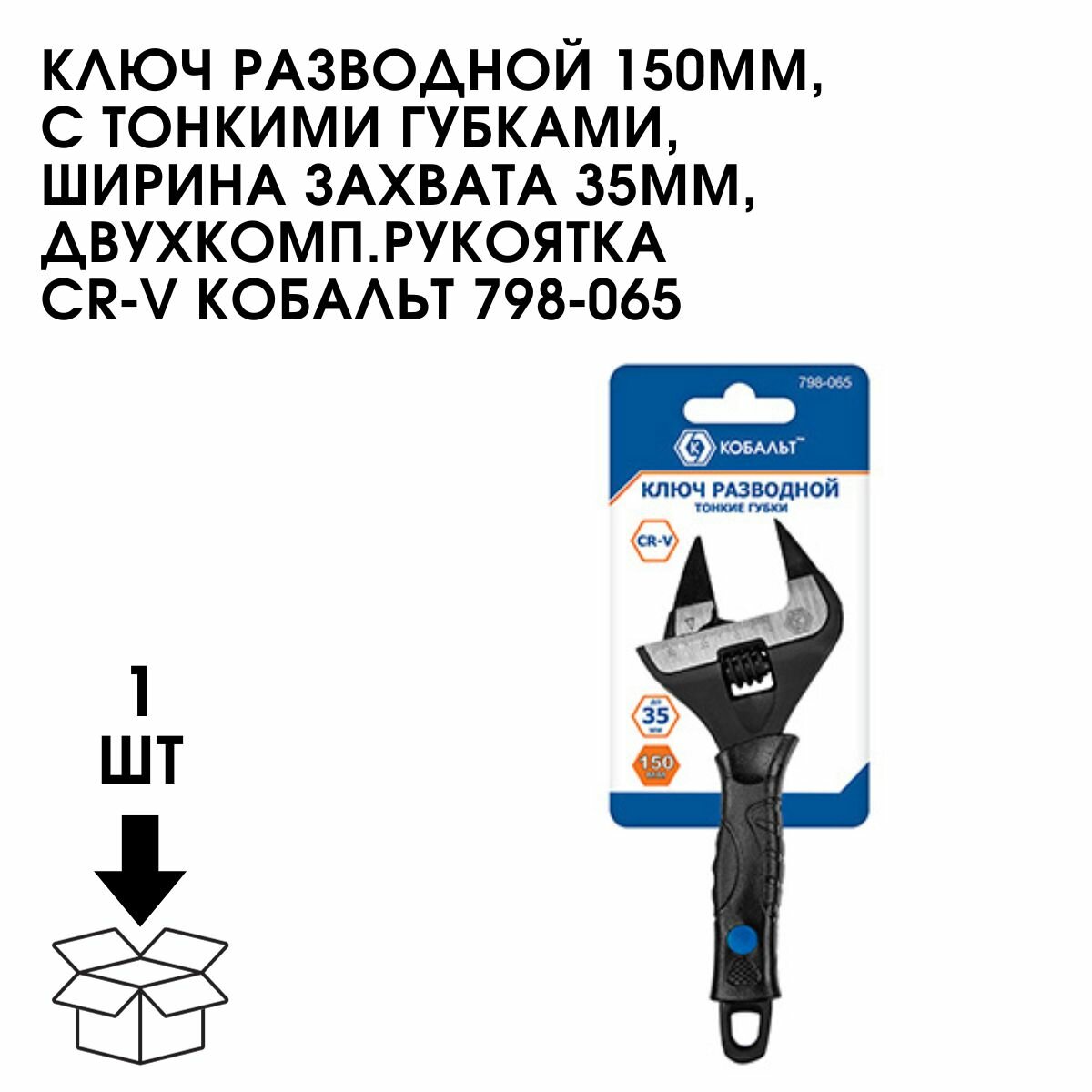 Кобальт Ключ разводной 150 мм, с тонкими губками, ширина захвата 35 мм, двухкомпонентная р-ка CR-V 798-065