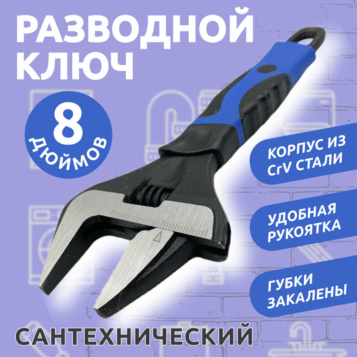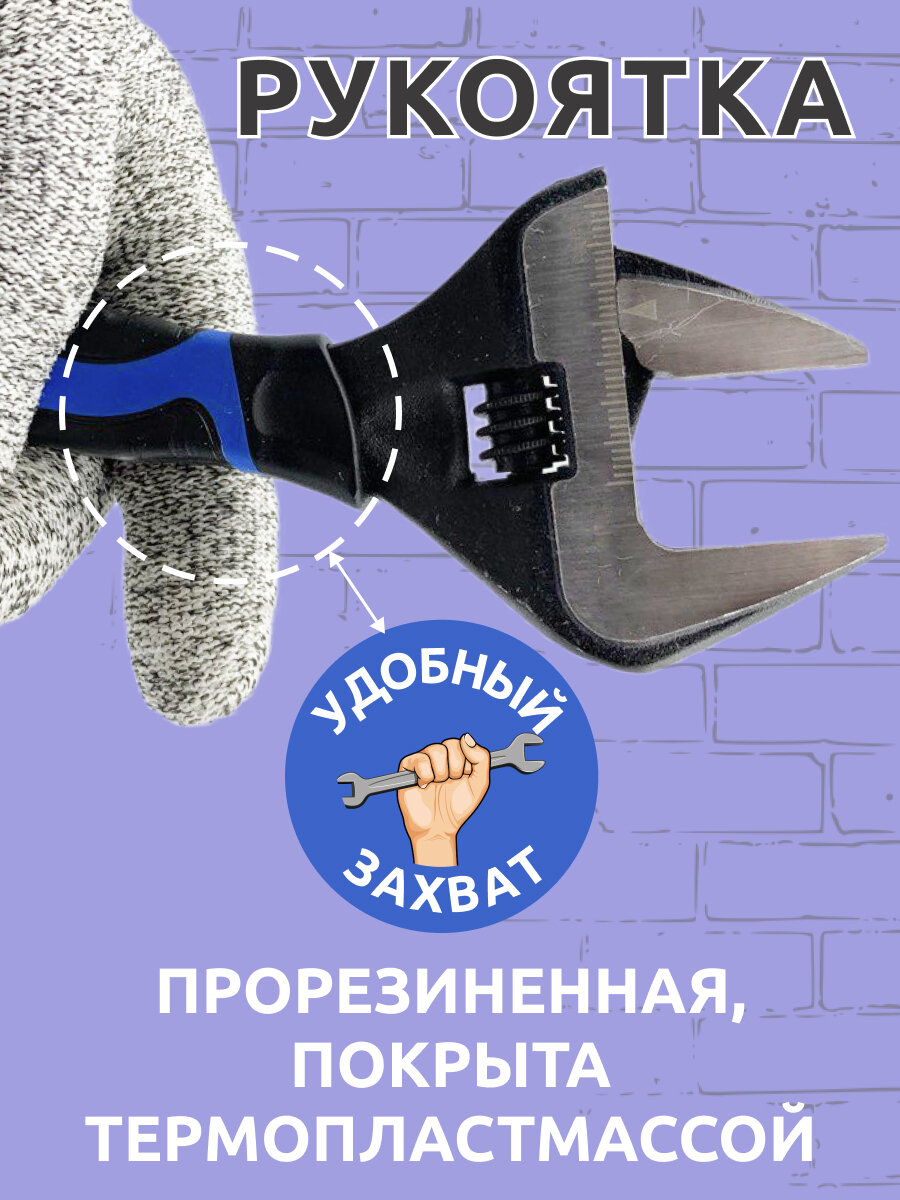 Разводной сантехнический ключ с тонкими губками 8" 35 мм ширина захвата интересное: