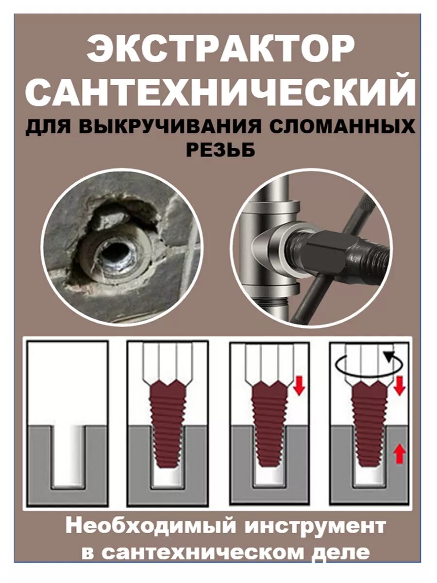 Экстрактор сантехнический для выкручивания сломанных резьб интересное: