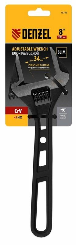 Купить DENZEL Ключ разводной, 200 мм, CrV, кованый Denzel ( 15748 )