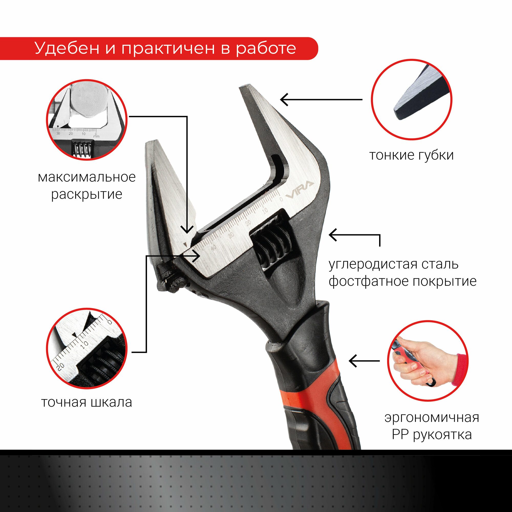 Ключ разводной с тонким губками 250 мм VIRA интересное: