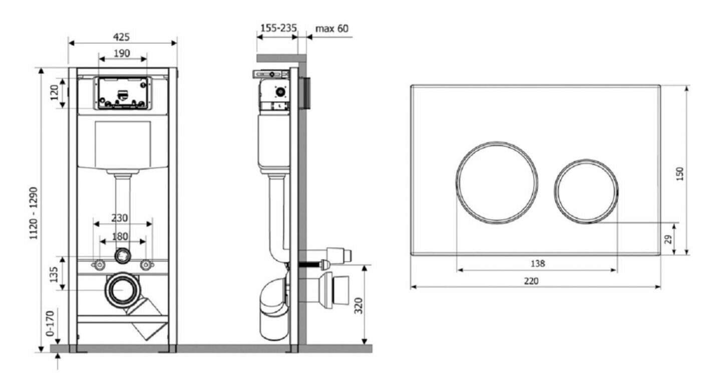 | Комплектация | звукоизоляция / кнопка смыва / рама / сливной бачок |