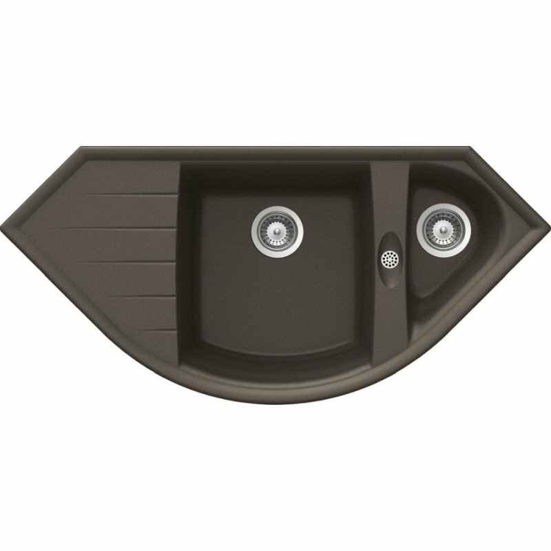 Угловая врезная гранитная кухонная мойка SCHOCK Genius 90C 111.3х52 см, мокка