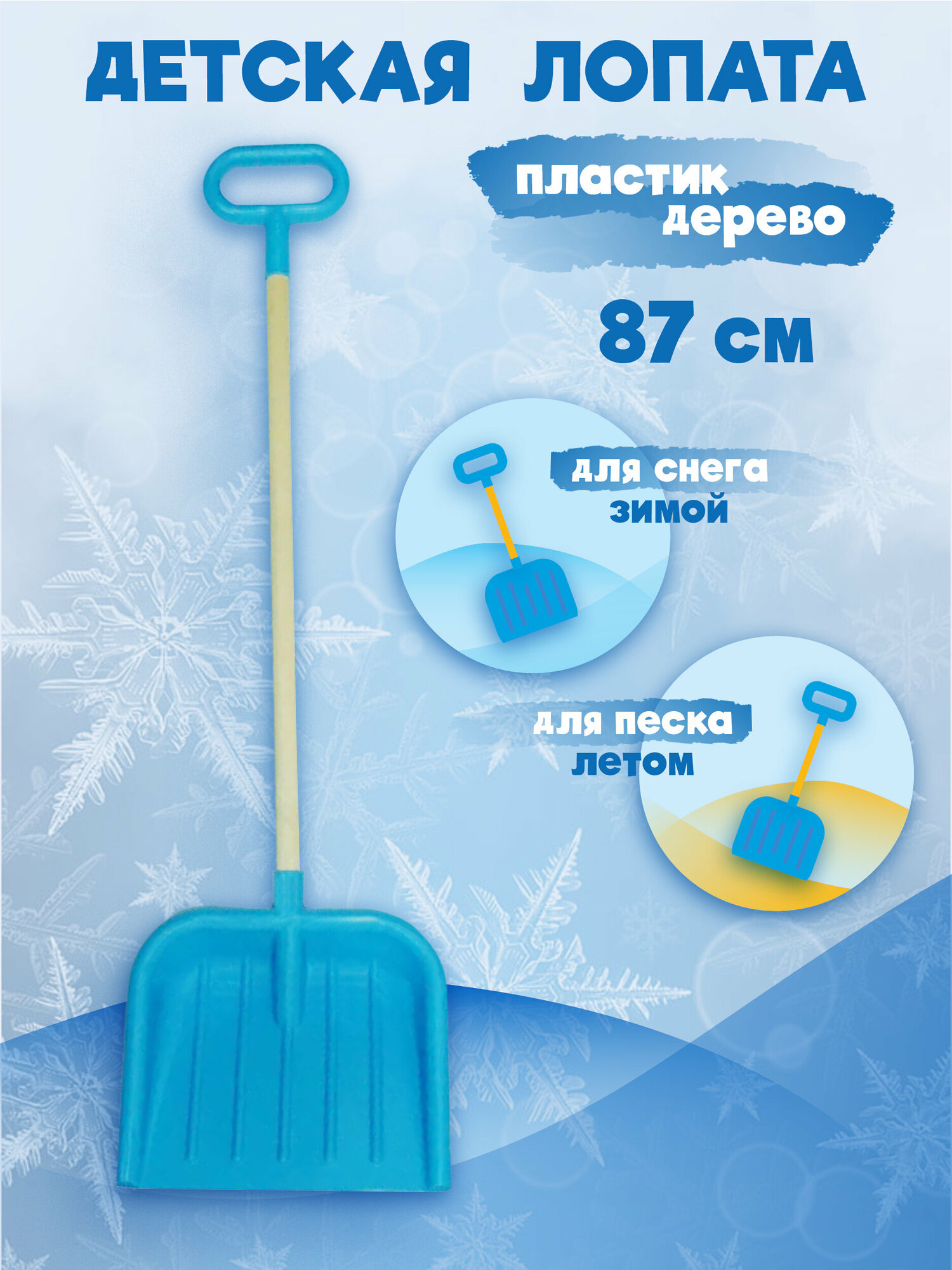 Лопата детская для снега и песка, деревянный черенок с ручкой, 87см, синяя интересное: