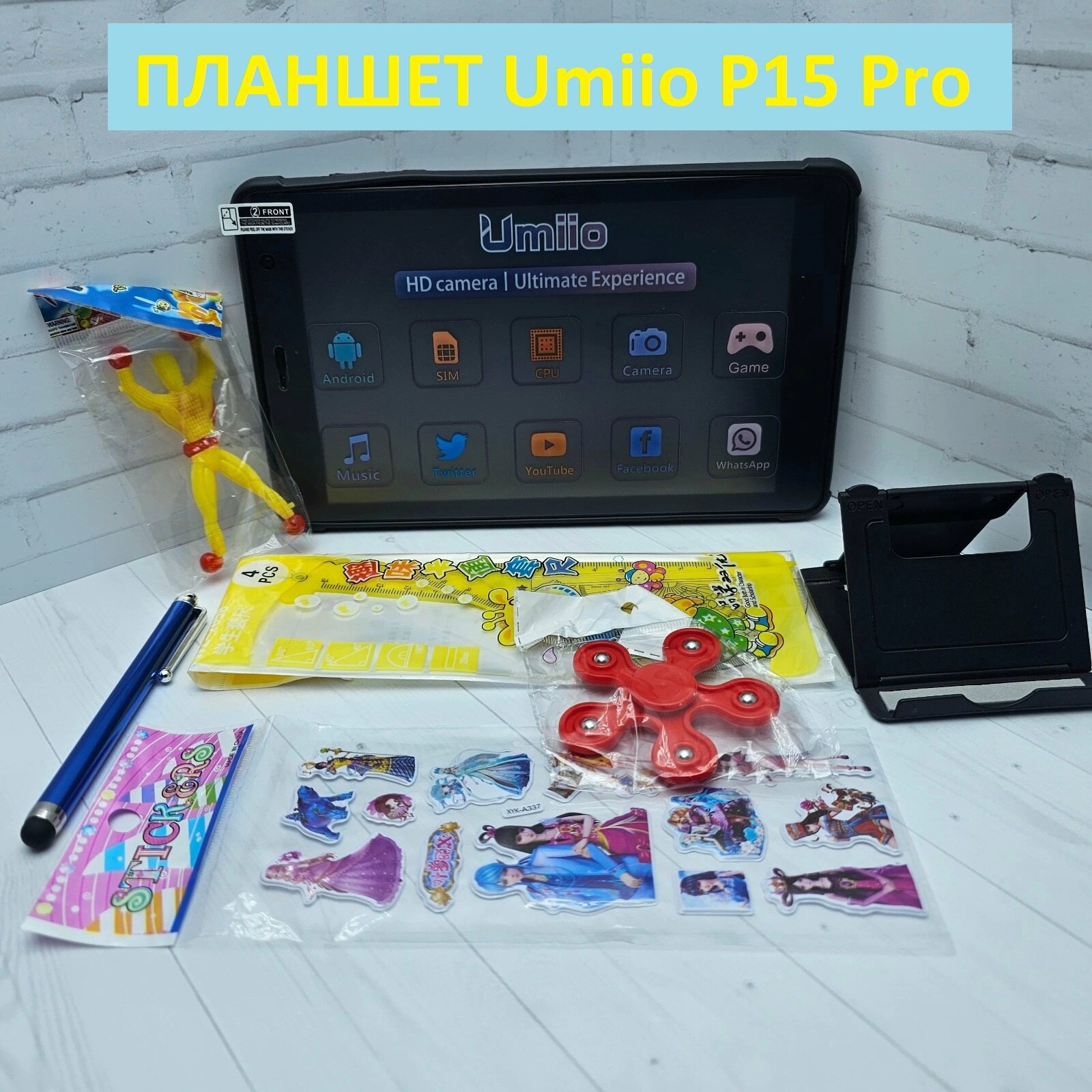 | Комплектация | Планшет / USB кабель / Адаптер питания / Подставка для планшета / Линейка / Спиннер / Защитная пленка / Чехол / Стилус |