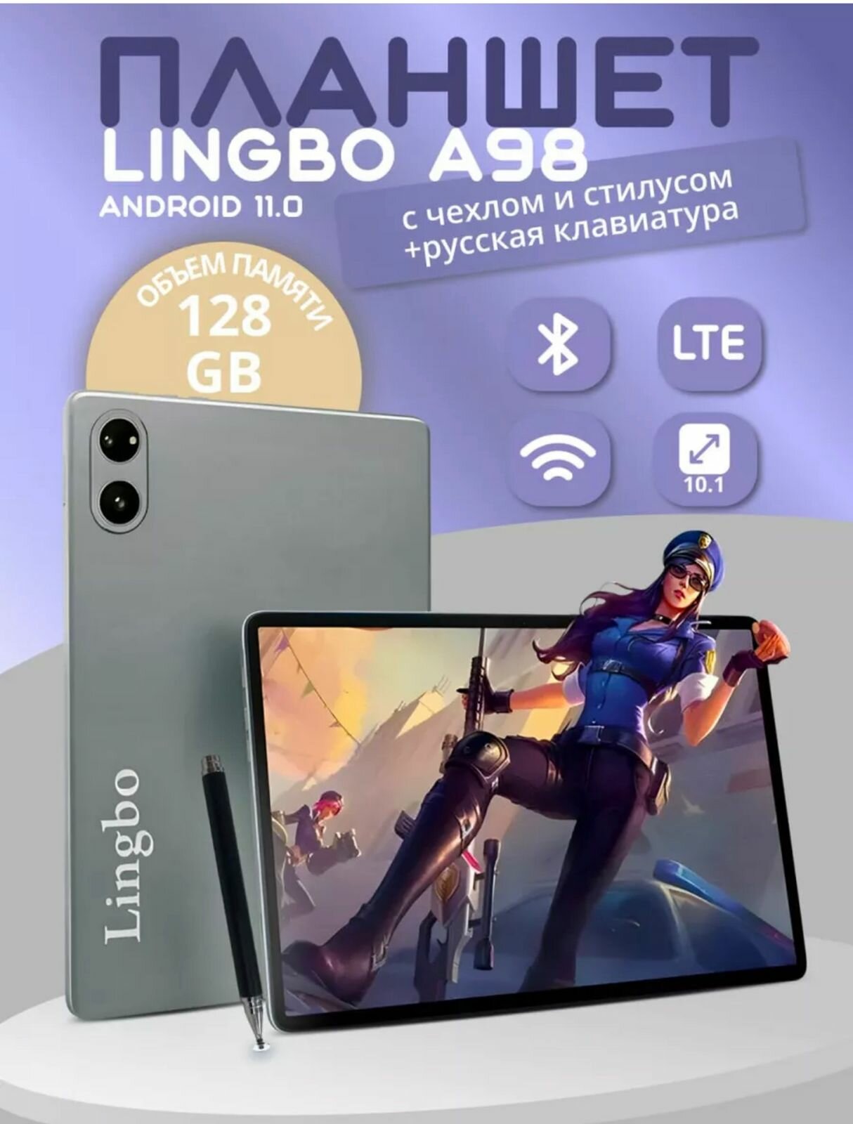 Планшет Lingbo A98 с клавиатурой.-7, 10.1", 128GB, серый интересное: