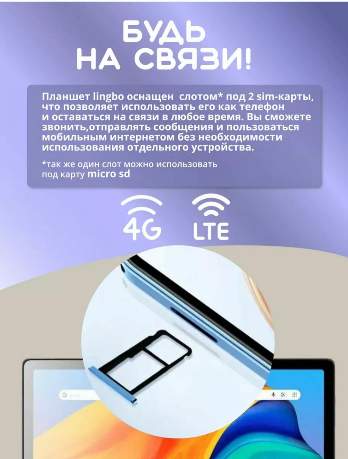 | Особенности | cлот для карты памяти |