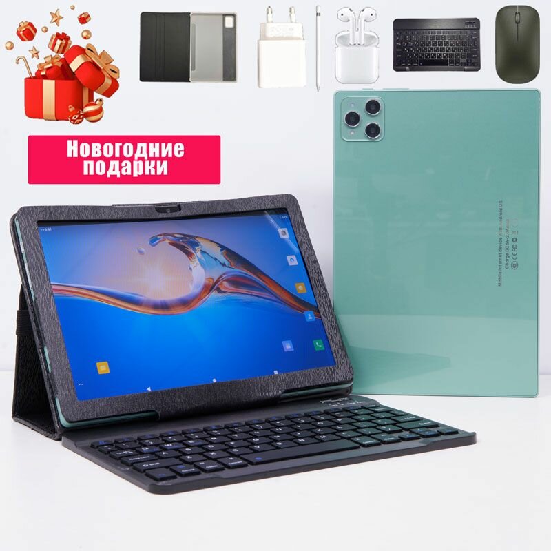 Купить Планшет Rocket Зеленый 6+128GB сим-карта 4G LTE " В комплекте мышь, русская клавиатура и беспроводные наушники.