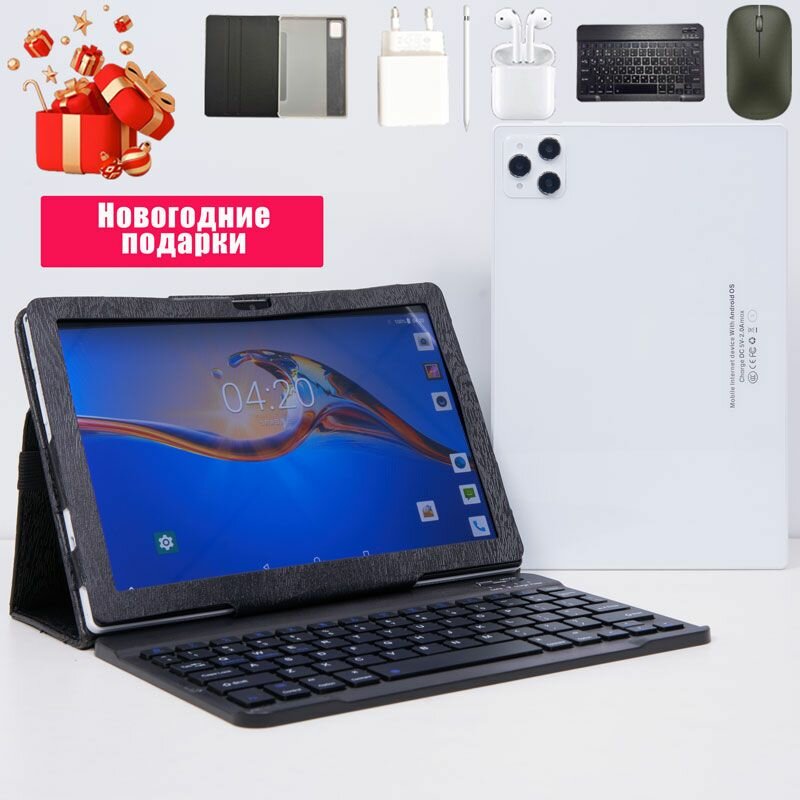 Планшет Rocket Белый 6+128GB сим-карта 4G LTE " В комплекте мышь, русская клавиатура и беспроводные наушники. интересное: