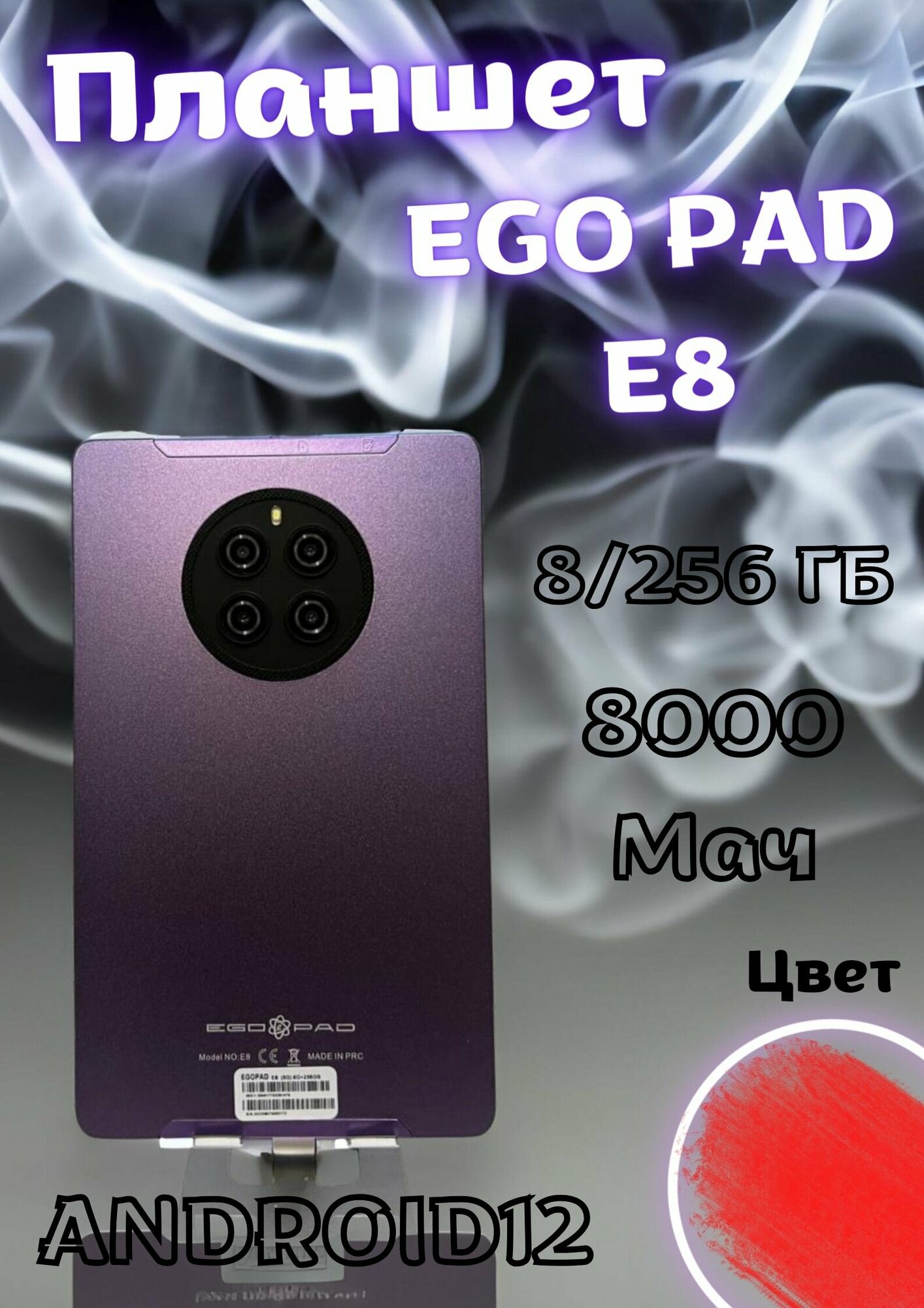 Планшет "EGOPAD E8" 8ГБ/256ГБ/ANDROID 12/ C Диагональю - 8/ Цвет "Фиолетовый"