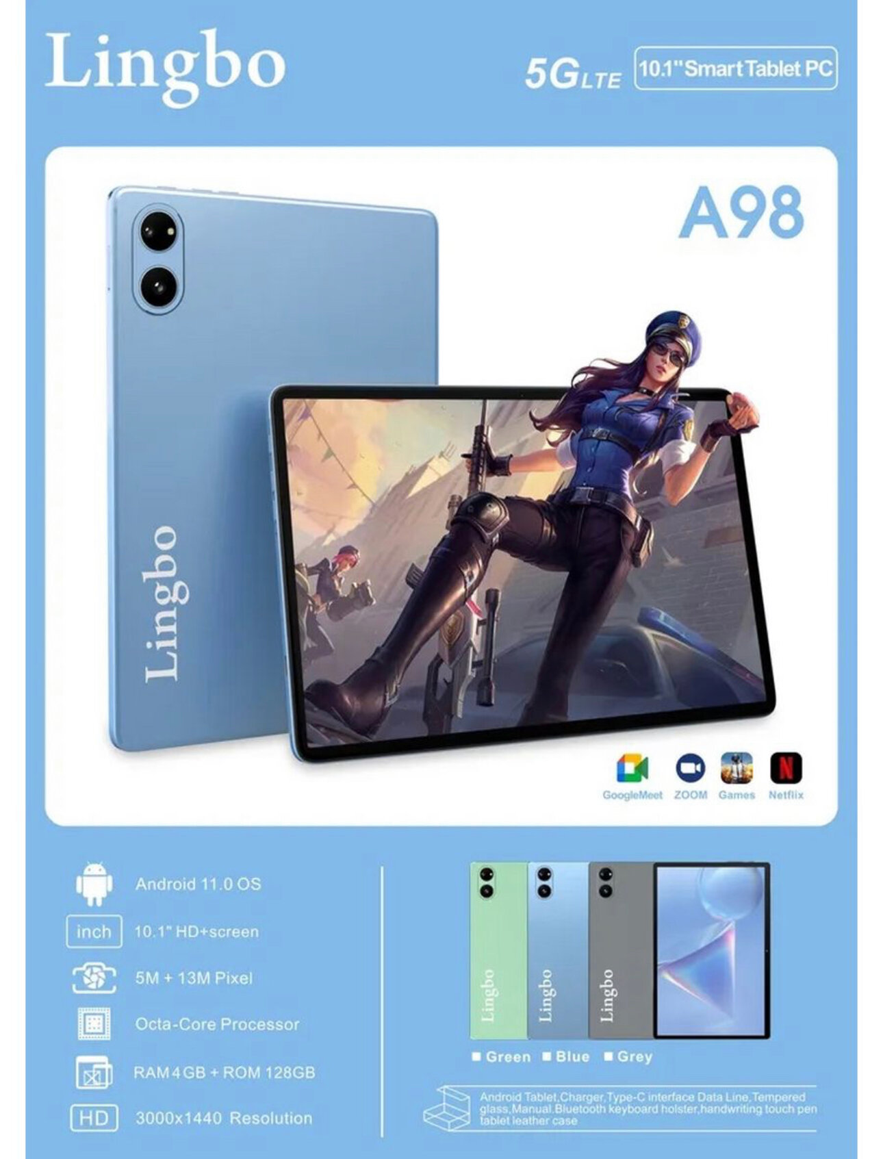 Купить Планшет для детей и взрослых с диагональю 10.1 Серый / LTE , 4GB / 128GB , Планшет игровой со стилусом и клавиатурой