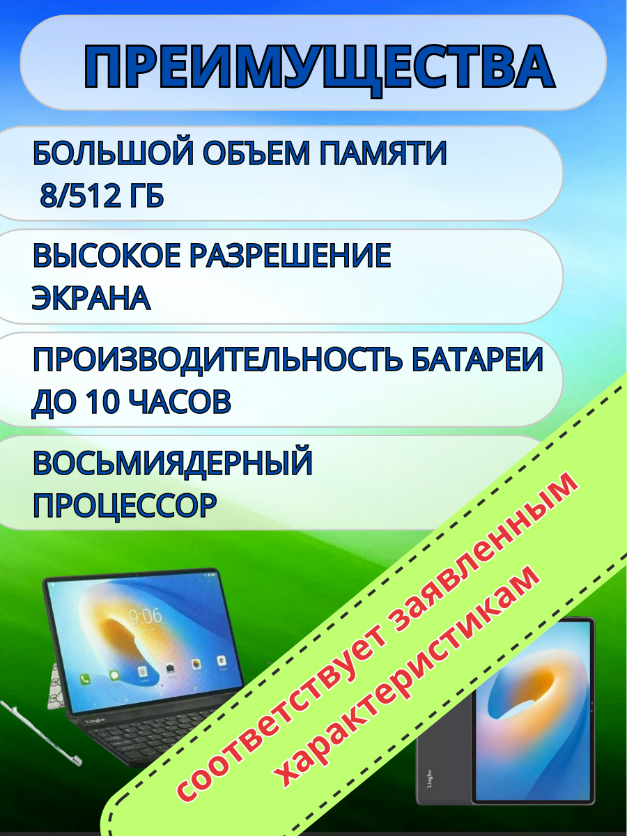 Планшет Lingbo 8/512 GB 10.1 дюйм Android 12 серый интересное: