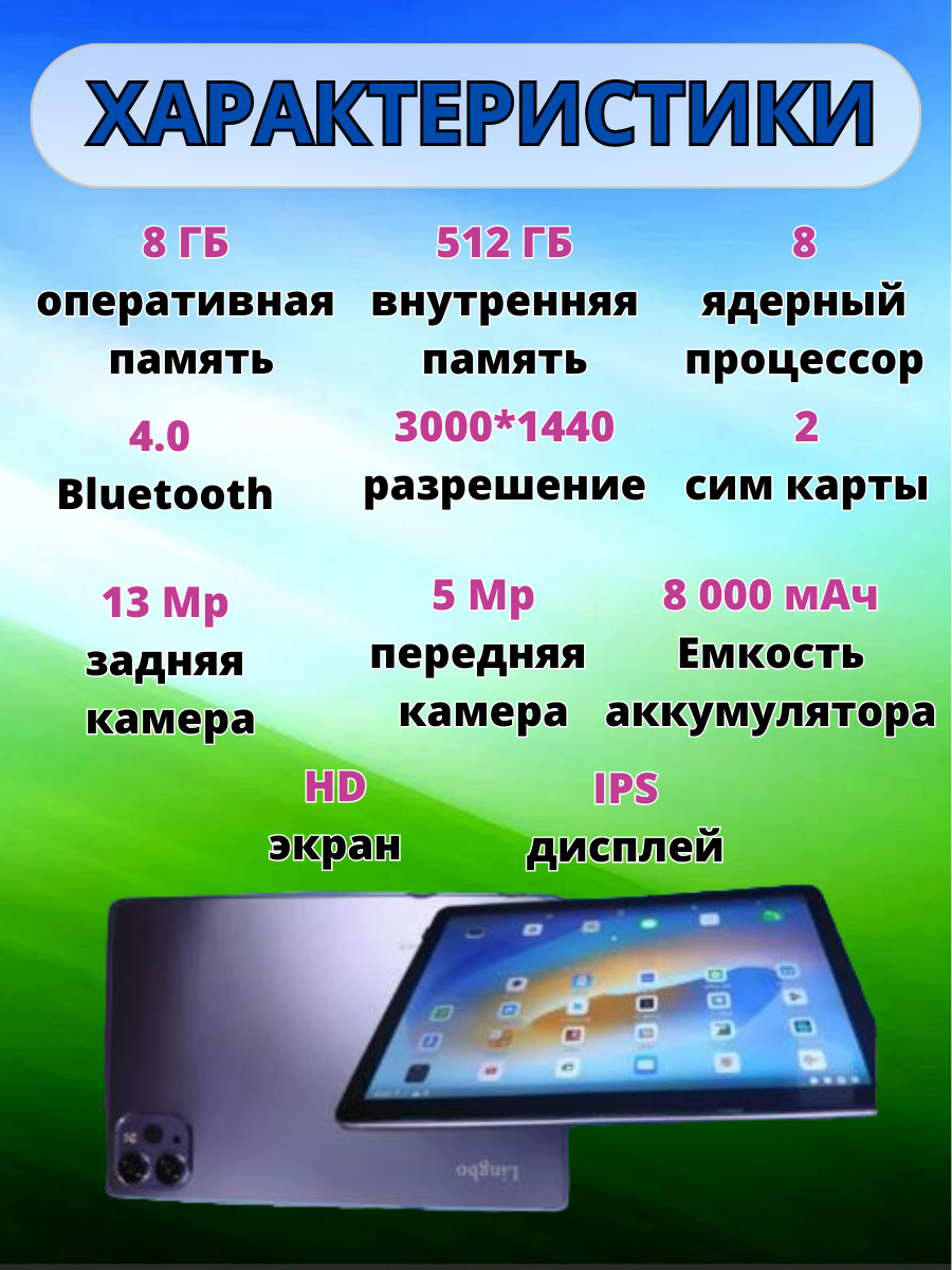 Ниже Вы можете прочитать отзывы на Планшет Lingbo 8/512 GB 10.1 дюйм Android 12 серый, ознакомится с подробными характеристиками, посмотреть интересные обзоры и фотографии на Планшет Lingbo 8/512 GB 10.1 дюйм Android 12 серый.