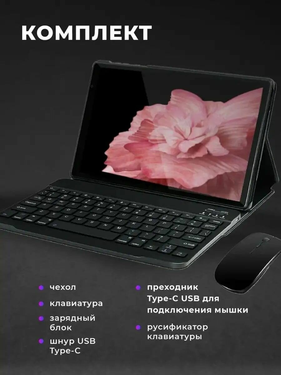 | Комплектация | планшет; клавиатура; чехол; зарядный блок; кабель USB-Tyre C, переходник USB-Tyre C |
