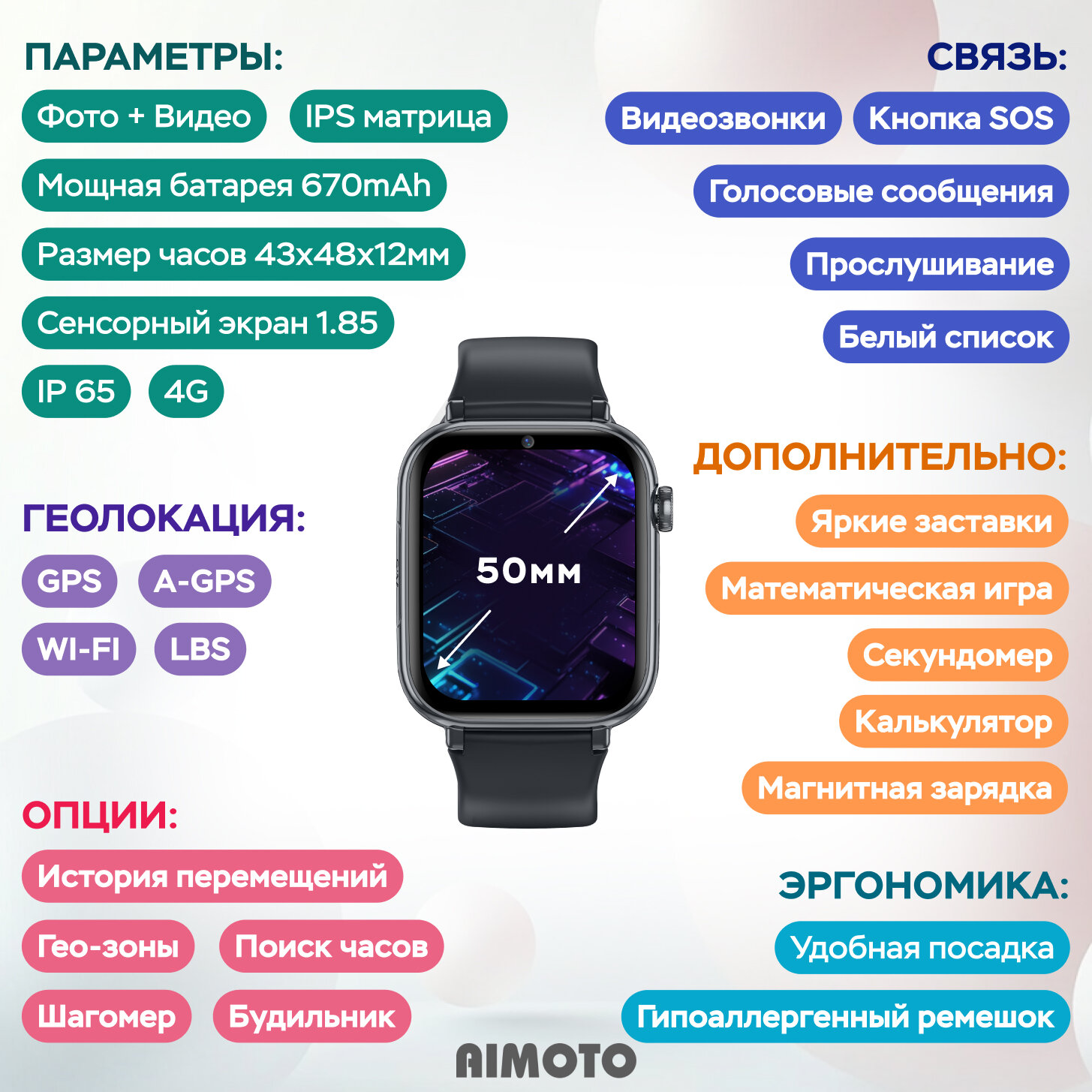 Купить Умные детские смарт-часы 4G GPS Aimoto Teen, Черный