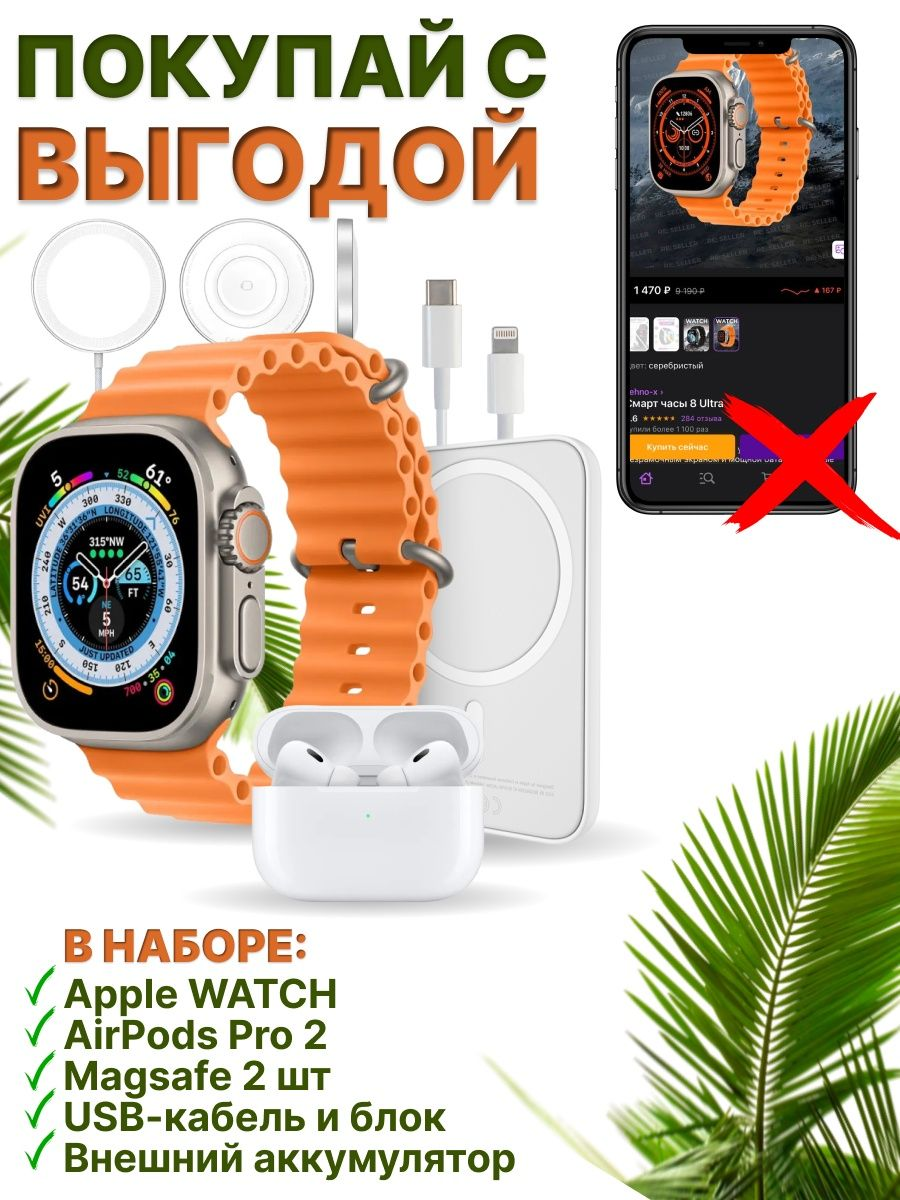 Умные часы в подарочном наборе/6 в1/ для IPhone и Android/Watch 7/Наушники/Powerbank - Картхолдер интересное: