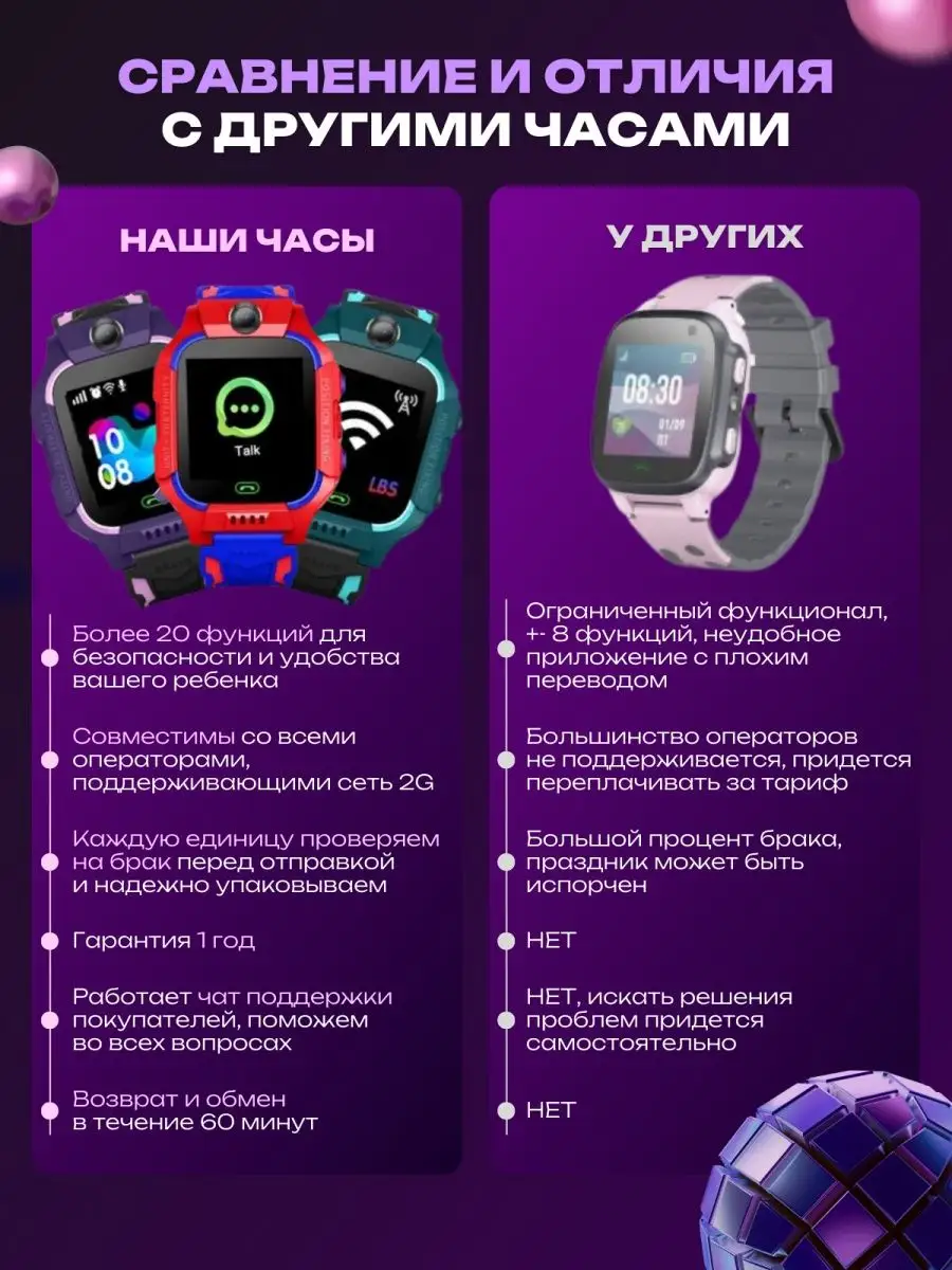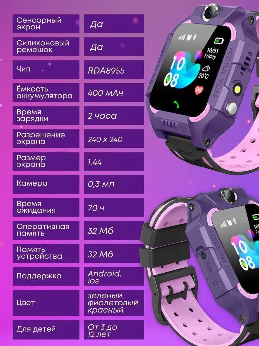 Умные часы для детей SM Смарт часы с камерой и функцией отслеживания, 44mm, GPS/Фиолетовый интересное: