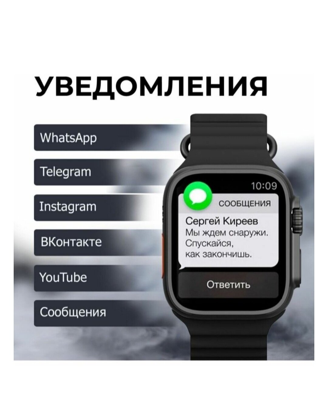 Смарт-часы Watch 8 серии Ultra с беспроводной зарядкой 49mm T800 Ultra HIwatch PRO - черный интересное: