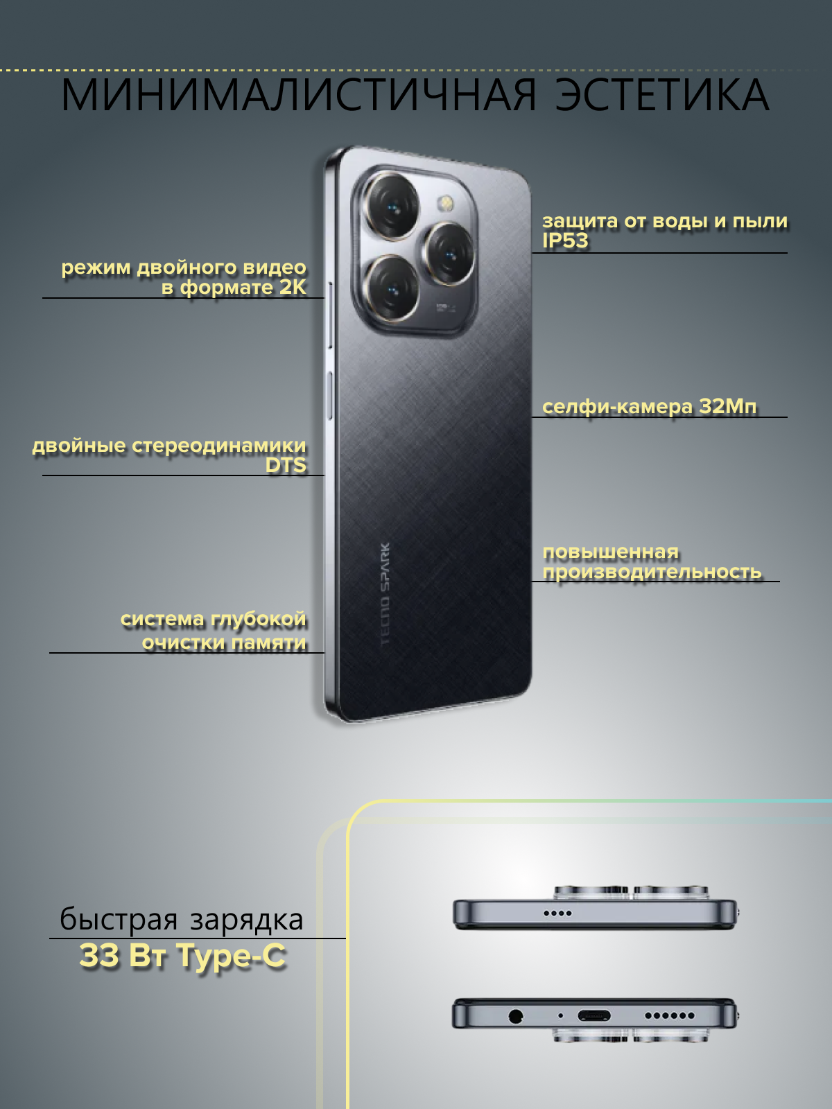 СохранитьСмартфон Tecno Spark 20 Pro 8/256 Moonlite Black интересное: