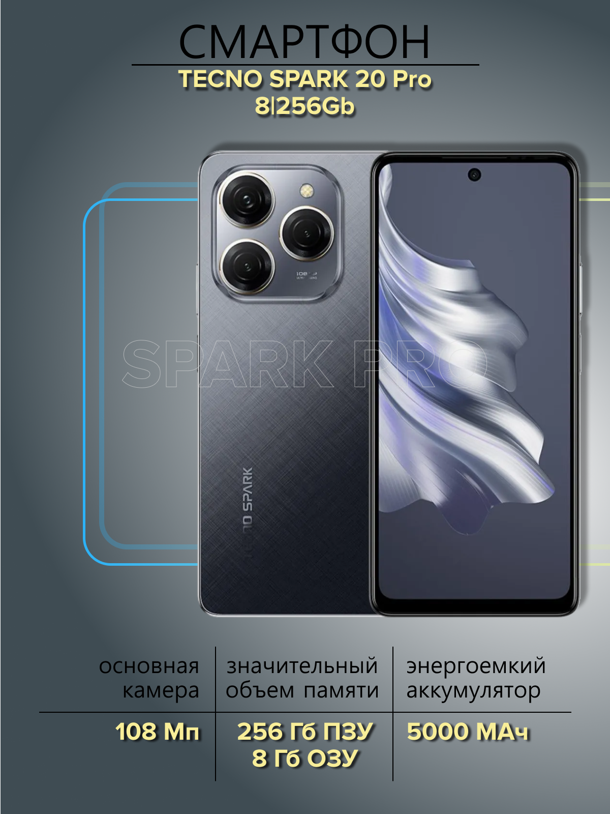 Купить Смартфон Tecno Spark 20 Pro 8/256 Moonlite Black