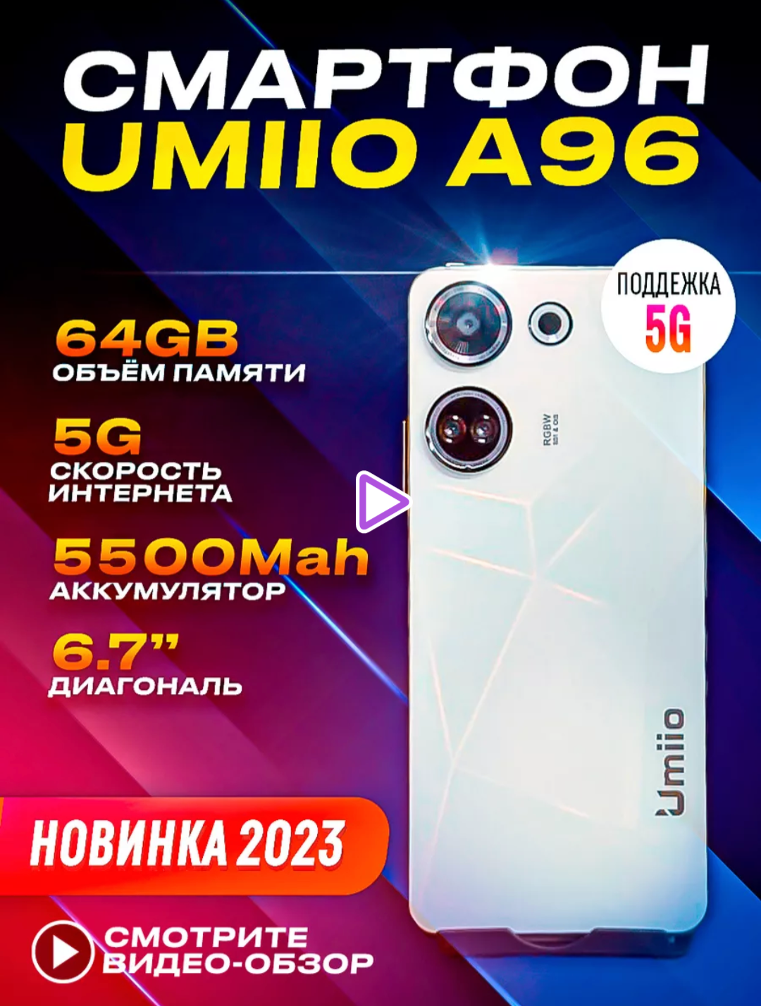 Смартфон Umiio A96, 6GB + 64GB, 5MP+16MP, 5500mAh, Белый интересное:
