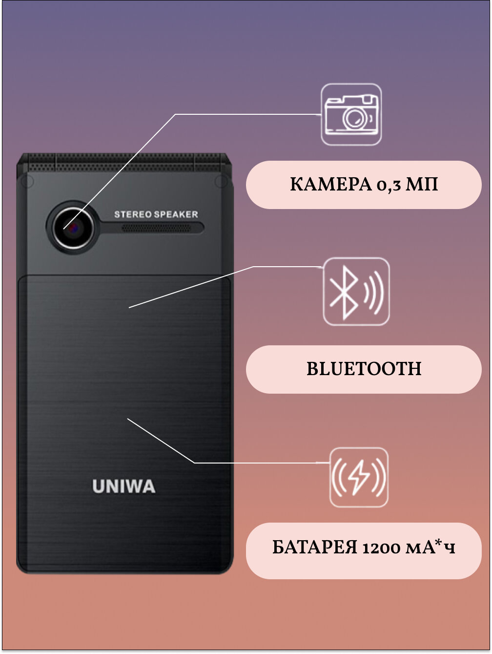 Телефон раскладушка кнопочный мобильный UNIWA X28 Flip