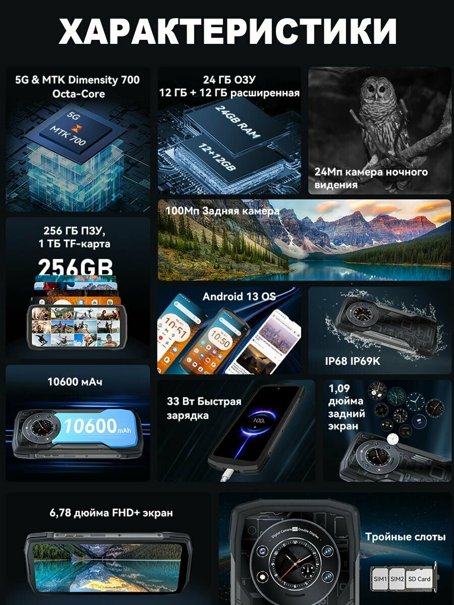 Смартфон Cubot KingKong Star 5G, 12/256ГБ, global, Cubot, KingKong Star 5G, Смартфон, Черный, 12ГБ, 256ГБ, global, Новый