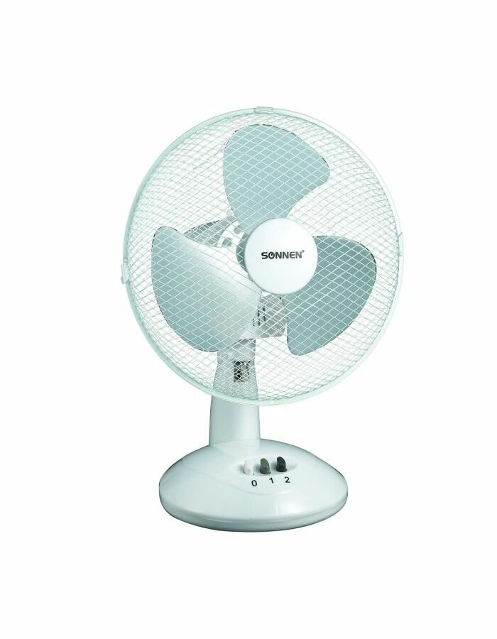 Вентилятор настольный бытовой комнатный для дома/офиса на подставке FT23-B6, d=23 см, 2 скоростных режима, мощность 25Вт, Sonnen, белый/cерый