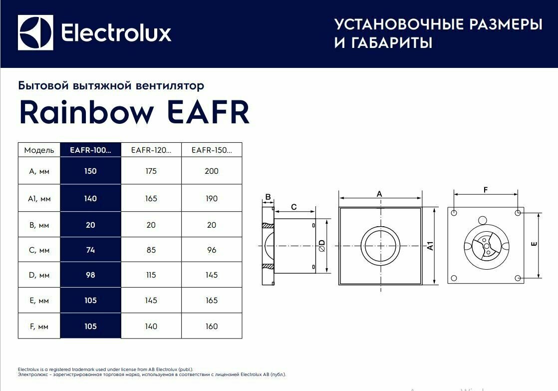 Вентилятор вытяжной Electrolux серии Rainbow EAFR-100