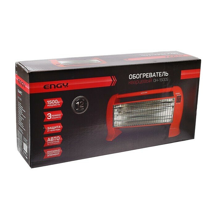 Купить Обогреватель ENGY QH-1500S, кварцевый инфракрасный, 3 уровня нагрева, 1500 Вт, красный