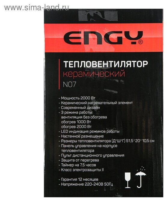 Тепловентилятор ENGY N07, настенный, керамический, 2000 Вт, 3 режима, белый