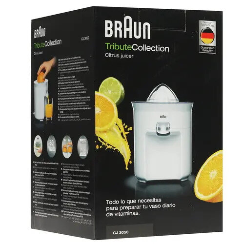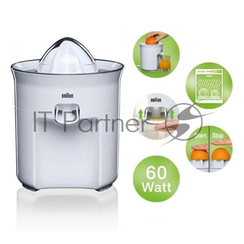 Соковыжималка для цитрусовых Braun CJ-3050 (Мощность 60 Вт. Система прямой подачи сока. Система "капля-стоп". Материал корпуса пластик. Импульсный режим.)