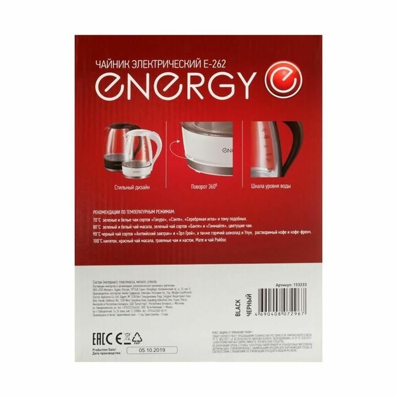 Ниже Вы можете прочитать отзывы на Чайник Energy E-262 черный, ознакомится с подробными характеристиками, посмотреть интересные обзоры и фотографии на Чайник Energy E-262 черный.