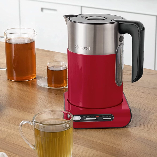 | Отзыв: | Чайником пользуюсь несколько месяцев, выбрали эту модель за несколько режимов нагрева воды и возможность сохранения температуры, плюс дизайн его, конечно, безупречный - прекрасно вписался в нашу кухню.Уютный, удобный чайник. надеюсь на долгий срок службы- Бош все таки. |