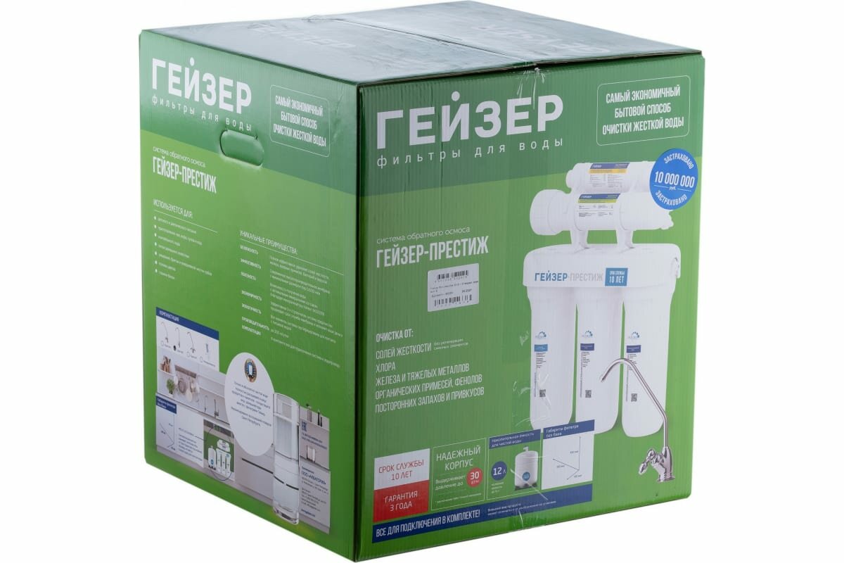 Обратный осмос фильтр для воды Гейзер Престиж, с краном, с баком 12 л, максимально возможная степень очистки воды, 20001