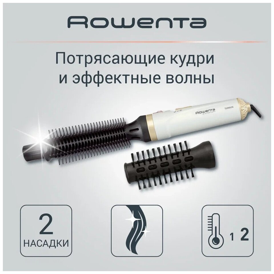 Фен щётка ROWENTA Wave Curl Brush CF3910, белый/золотой