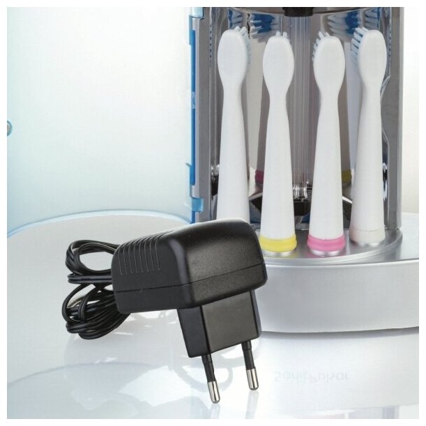 дезинфектор. То ли от него, то ли самовнушение, то ли так щетинки двигаются, но у меня ощущение, что там чуть ли не стерильность. Зубы языком ощущаю гладкие, налет уменьшился за это время (пользуюсь режимом super3-4 раза в неделю), утренний запах изо рта тоже (прошу прощения за подробности, но, мне кажется, это проблема многих). Универсальная вещь, семейная. Советую. |