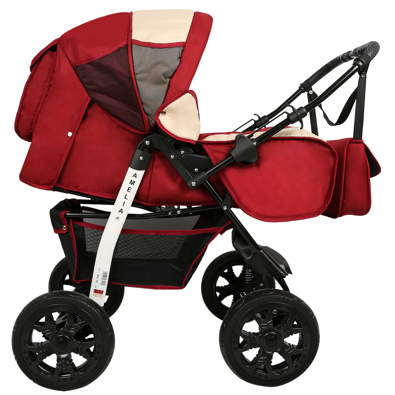 Коляска-трансформер Alis Amelia, перекидная ручка, красно-бежевый