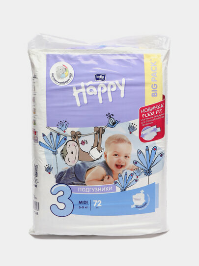 Подгузники "Happy Midi" (5-9 кг) 72 шт.