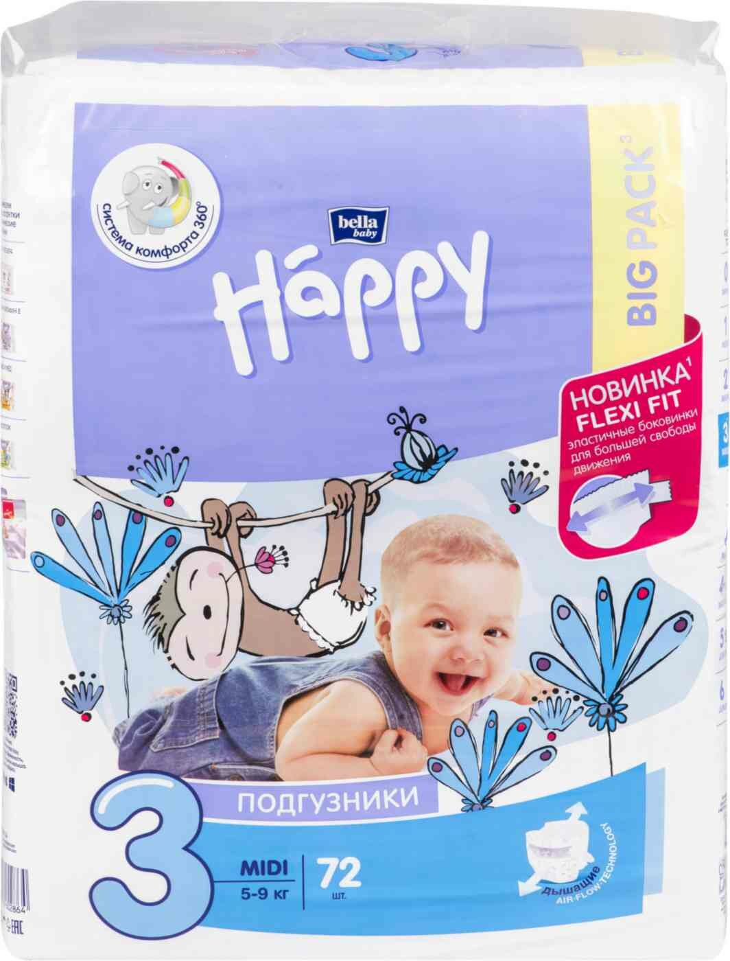 Купить Подгузники Happy Midi (5-9 кг) 72 шт.